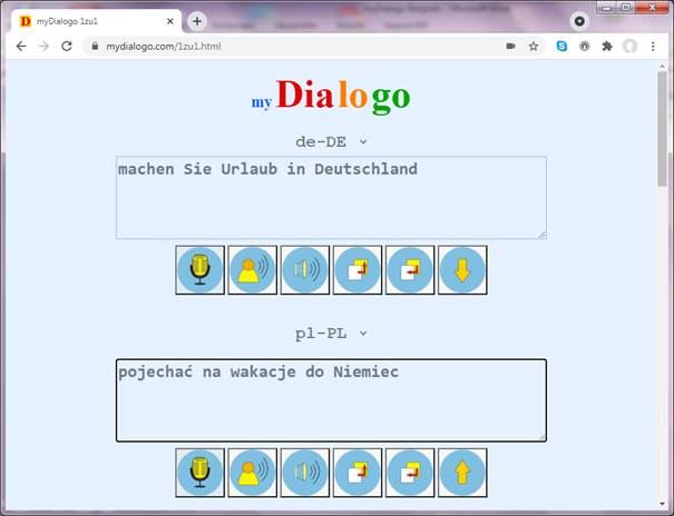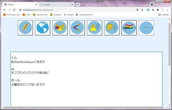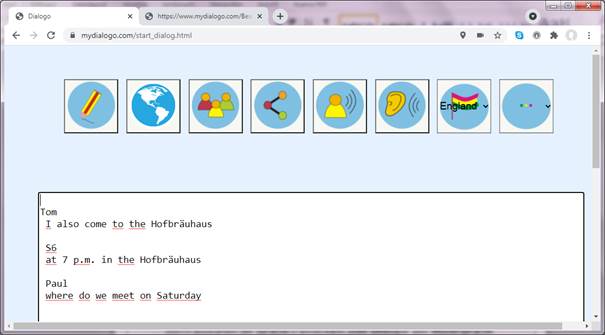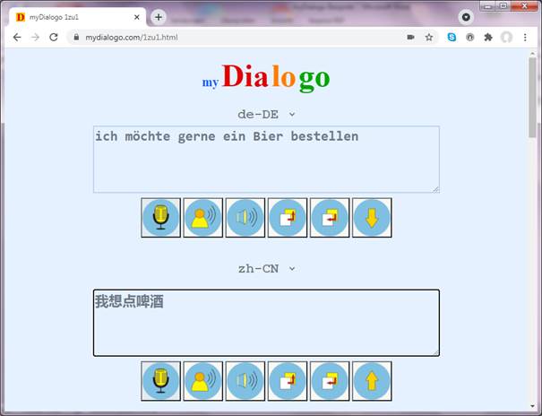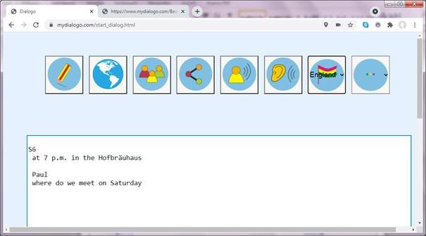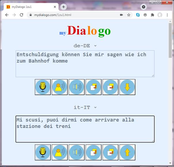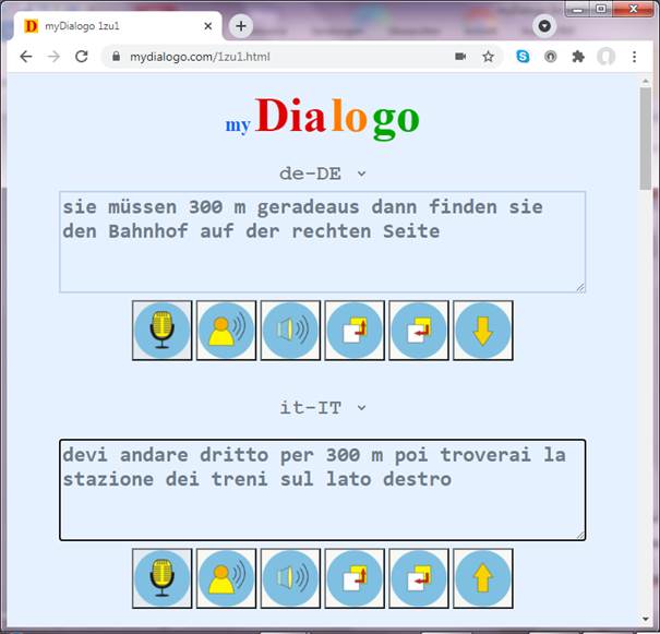 Es wird immer der letzte eingegebene Dialogtext in der eigenen Zielsprache über die Lautsprecher ausgegeben.