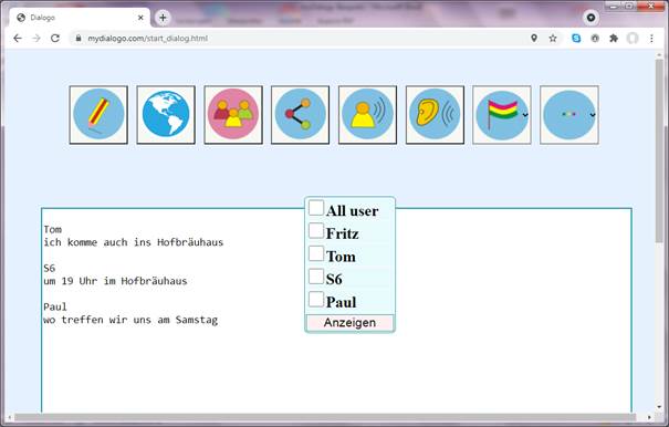 Man kann nun einen Text eingeben/sprechen, der anschließend bei allen Gruppenmitgliedern