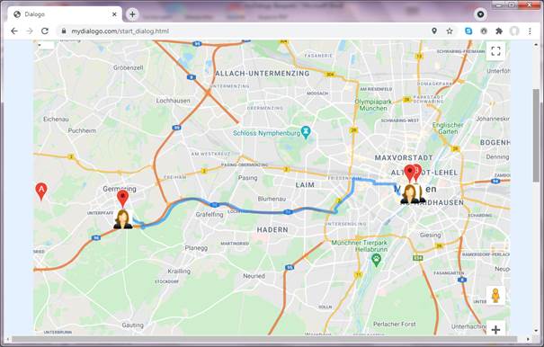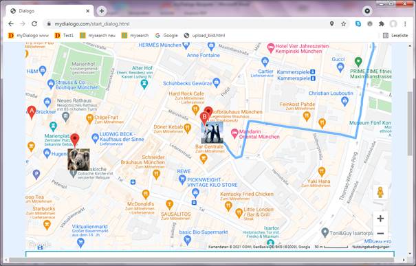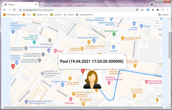Die Marker für Tom und Paul werden übereinanderliegend auf den Koordinaten des Hofbräuhaus