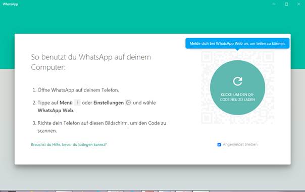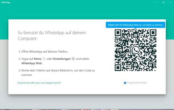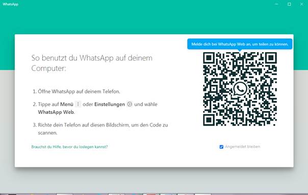 auf einem Windows Rechner gestartet haben, können Sie auch WhatsApp für eine
