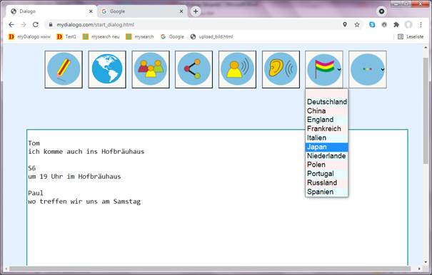 Durch auswählen der Sprache kann jeder Beteiligte seine Muttersprache einstellen.